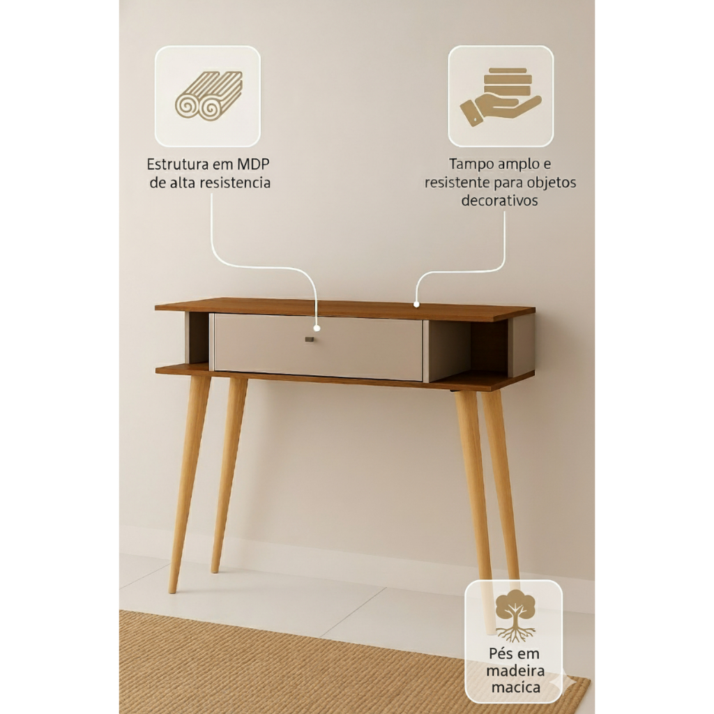 Transforme sua sala em um ambiente moderno e acolhedor com o Aparador Lumine Nature Off White. Com design contemporâneo e acabamento refinado, este móvel combina o charme do madeirado natural com o toque sofisticado do off white, criando uma peça versátil e elegante para diferentes estilos de decoração. Ideal para sala de estar, hall de entrada ou sala de jantar, o Aparador Lumine Nature é perfeito para apoiar objetos decorativos, vasos, quadros ou até servir de apoio para bebidas e acessórios. Um móvel funcional, resistente e com design que valoriza cada detalhe do seu espaço. 📏 DIMENSÕES DO PRODUTO MONTADO (cm): - Altura: 105 cm - Largura: 37,5 cm - Profundidade: 10 cm (Medidas aproximadas – podem variar conforme o lote de produção) ⭐ DESTAQUES TÉCNICOS: - Design moderno com combinação de madeira natural e off white - Estrutura em MDP de alta resistência - Acabamento em pintura UV acetinada, com toque suave e duradouro - Tampo amplo e resistente para objetos decorativos - Pés em madeira maciça, garantindo estabilidade e durabilidade - Ideal para sala de estar, jantar, corredor ou escritório - Fácil de montar – acompanha manual e ferragens ❗ OBSERVAÇÕES IMPORTANTES: - Produto enviado desmontado, com manual de montagem incluso - Não realizamos serviço de montagem - Imagens meramente ilustrativas objetos decorativos não acompanham o produto - As cores podem variar conforme o lote ou a configuração do monitor Casa Móveis – Onde qualidade, design e conforto se encontram para deixar cada canto da sua casa mais especial.
