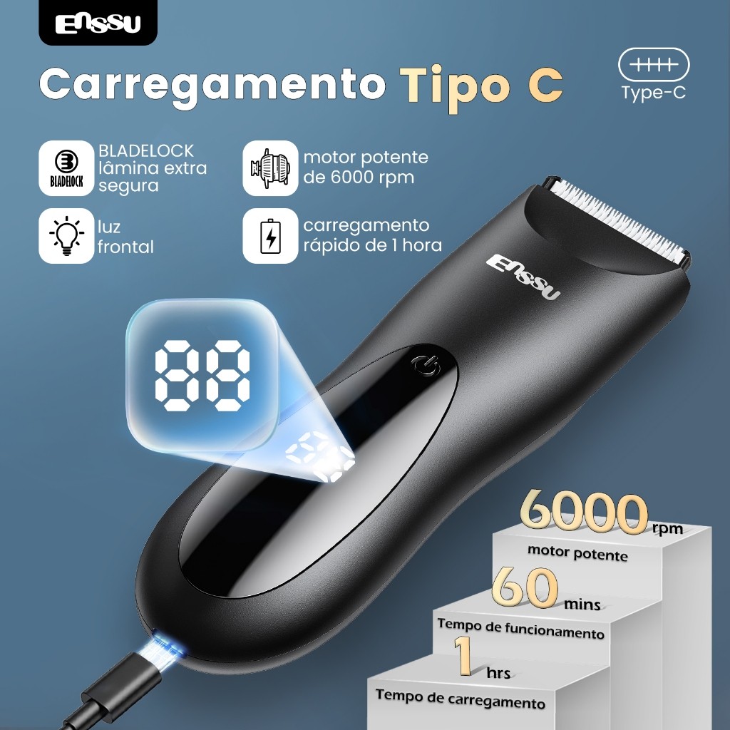 Aparador de Pelos Enssu para Homens, Portátil, Recarregável, Com Luz LED, Pode Aparar a Barba