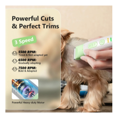 Kit de higiene para cães, tosquiadeira silenciosa 4 em 1 para suprimentos de higiene, cortador de patas para cães sem fio, moedor de unhas para cães, barbeador profissional de pêlos compridos para cabelos emaranhados para gatos e cães pequenos. Kit de higiene tudo-em-um Este versátil kit de higiene para animais de estimação foi projetado para aparar de forma precisa e eficaz os pelos de cães, gatos e outros animais, cobrindo seus corpos, rostos, orelhas, unhas, garras e quartos traseiros. Diga adeus ao incômodo de escolher as ferramentas de higiene certas para seus amigos peludos! Apare sem medo para seu cachorro PetFuzzyFix O Saver apresenta um design de lâmina de cerâmica que minimiza o atrito e o ruído. Combinado com motores de alta qualidade e eixos de motor ultracurtos, ele opera a apenas 50 dB, proporcionando uma experiência de limpeza poderosa e silenciosa. Perfeito até mesmo para os animais de estimação mais sensíveis. Projetada para donos de animais de estimação de todos os níveis de habilidade, a máquina de cortar cães profissional FuzzyFix apresenta 3 velocidades ajustáveis (5500/6500/7500 RPM) para se adequar à tolerância ao ruído e ao tipo de cabelo de seus animais de estimação. Com 2 pentes guia de fixação (3/4 e 5/6 mm) para o aparador de cabelo e um pente guia de 2 mm para o aparador de patas, o corte é preciso e sem estresse. Design fácil de usar e sem fio Com cabeças de corte removíveis, limpar é tão fácil quanto enxaguar em água corrente. O aparador de rosto de cachorro recarregável por USB oferece até 4 horas de tempo de operação com carga total, oferecendo conveniência para uso durante todo o dia. Seu design sem fio permite uma limpeza fácil onde quer que você esteja. Além disso, a embalagem ecológica reflete nosso compromisso com a sustentabilidade. pacote inclui: 1 máquina de cortar cães 1 cabeça de aparador de cabelo 1 cabeça de aparador de detalhes corporais 1 cabeça de aparador de patas 1 cabeça de moedor de unhas 3 pentes limitados