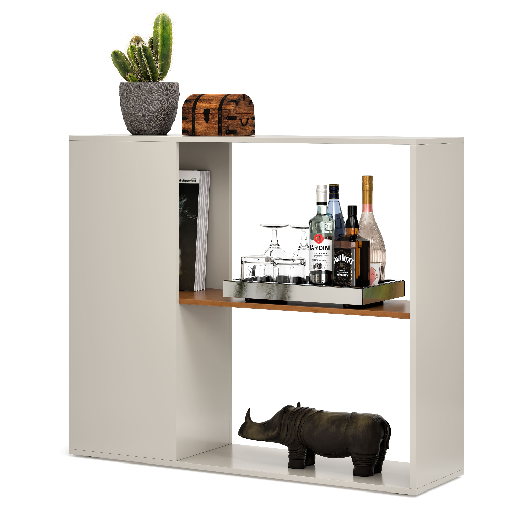 Aparador Havana 90 cm – Buffet Barzinho Estante Baixa Moderna para Sala de Estar ou Recepção Renove sua decoração com o Aparador Havana, um móvel moderno, versátil e compacto ideal para sala de estar, recepção, hall de entrada, barzinho ou escritório. Com 90 cm de largura, 29 cm de profundidade e design contemporâneo, o aparador buffet combina elegância e funcionalidade. Produzido em MDF/MDP de alta qualidade, o Aparador Havana possui acabamento em off-white com prateleira em tom amadeirado, criando contraste sofisticado. Perfeito como móvel de apoio para bebidas, livros, taças, decorações e vasos, tornando o ambiente mais charmoso e organizado. Características principais: Dimensões: 90 cm (largura) x 29 cm (profundidade) x 80 cm (altura) Material: MDF/MDP resistente com pintura UV Cor: Off-White com detalhe nature Estrutura aberta e moderna Montagem simples e manual incluso Vantagens: ✅ Ideal como aparador para sala de estar ou buffet barzinho moderno ✅ Design leve e versátil, combina com qualquer estilo de decoração ✅ Compacto e funcional, perfeito para ambientes pequenos ✅ Alta durabilidade e fácil limpeza Dicas de uso: Use como barzinho elegante, móvel de apoio decorativo, mini estante ou buffet moderno. Combine com espelhos, vasos, livros ou quadros para um visual sofisticado.