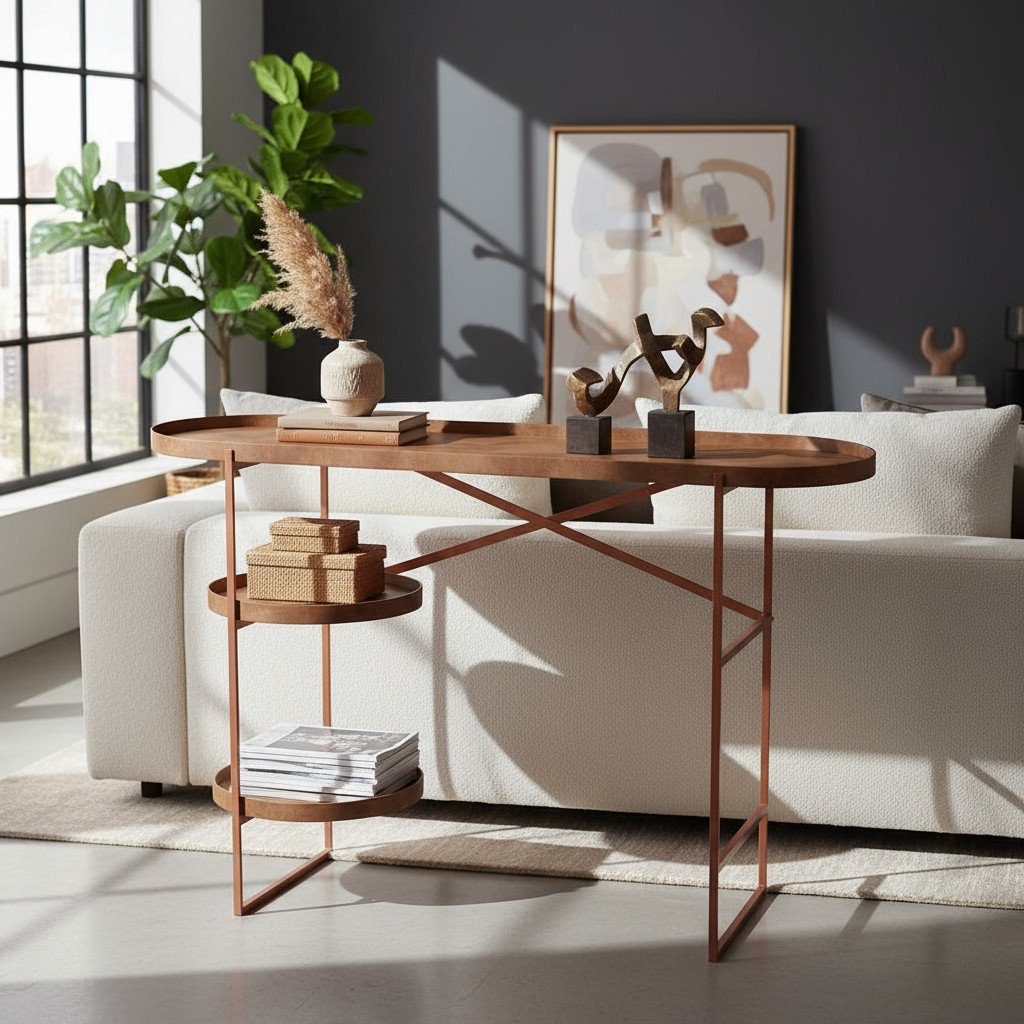 Aparador Luxo Austin 120cm Couro Ecológico e Ferro – Buffet Lateral / Carrinho de Bebidas Premium