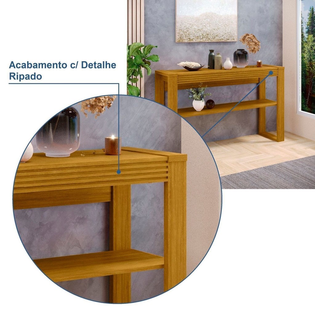 O Aparador Master é a escolha ideal para quem busca aliar elegância, funcionalidade e um visual contemporâneo com estilo moderno. Produzido 100% em MDF de alta qualidade, o móvel apresenta pés robustos de 25cm, prateleiras reforçadas para maior durabilidade e uma moldura frontal ripada que confere sofisticação e requinte ao ambiente. Versátil e moderno, o Aparador Master é perfeito para compor diversos espaços da casa, como sala de estar, quarto, hall de entrada ou até mesmo o escritório. Além de decorar, ele é ideal para expor objetos decorativos, livros, plantas ou servir como apoio em ambientes amplos, funcionando também como um elegante divisor de espaços. Bandeja: Não Peso (kg): 21 Garantia: 03 Meses Altura (cm): 85 Acabamento: Pintura UV Largura (cm): 126 Possui Pés: Sim Possui Adega: Não Possui Vidro: Não Possui Portas: Não Possui Gavetas: Não Possui Rodízio: Não Suporta Até (kg): 45 Possui Espelhos: Não Profundidade (cm): 38.5 Escala de Brilho: Semi-Brilho Material dos Pés: MDF Ambiente Principal: Sala de Estar Material Principal: MDF Possui Prateleiras: Sim Sapatas Niveladoras: Sim Material da Prateleira: MDF Acabamento da Prateleira: Pintura UV Peso Máximo por Prateleira: 45 Escala de Brilho da Prateleira: Semi-Brilho Marca: Móveis Fazzio Cor: Carvalho Oro Cor do Produto: Carvalho Oro Itens Inclusos: 1 Aparador, Kit Ferragens e Manual de Montagem Cor Predominante: Marrom Linha ou Coleção: Master Quantidade de Portas: Não Possui Quantidade de Gavetas: Não Possui