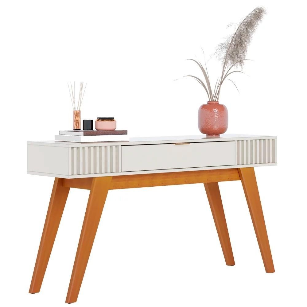 Sem a mínima ideia do que colocar naquele cantinho da sala, hall de entrada ou até mesmo sala de jantar? Então o aparador é o móvel perfeito pra você! Sim, ele é o item ideal para complementar a decoração e eficiência do cômodo agregando sofisticação e muito charme! E o Aparador Valerie Off White da Mpozenato é a personificação desse conceito! Ele possui pés em madeira maciça remetendo ao queridinho estilo retrô, que somando aos detalhes ripados nas extremidades conferem um design único e aconchegante. Ah, e também é um aparador para sala de estar com gaveta central de puxador dourado e amplo espaço para guardar seus itens, já o tampo pode abrigar objetos decorativos e diversos de sua preferência. Maravilhoso, né? Inclusive, é fabricado em MDP/MDF com acabamento em pintura UV para mais resistência e qualidade. Não perca essa chance! Adquira esse aparador moderno para complementar sua casa agora mesmo!! Dimensões do Produto Largura: 136 cm. Altura: 74 cm. Profundidade: 35,9 cm. Peso: 23 Kg. Características do Produto Material da Estrutura: MDP/MDF 15 e 25mm. Acabamento: Pintura UV. Escala de Brilho: Fosco. Peso Suportado: 5Kg na gaveta. Possui Portas: Não. Possui Prateleiras: Não. Possui Gavetas: Sim. Material da Gaveta: MDP. Quantidade de Gavetas: 1 Gaveta. Tipo de corrediças: Metálicas. Possui Nichos: Não. Possui Puxador: Sim. Possui Pés: Sim. Tipo de Pés: Madeira Maciça. Diferenciais: - Design moderno. - Gaveta com amplo espaço interno. - 4 pés em madeira maciça. - Puxadores dourados. - Ripas decorativas nas laterais. Sistema de Montagem: Minifix / Cavilhas / Parafusos. Manual de Montagem: Sim. Complexidade da Montagem: Média. Volumes: 1 Volume. Conteúdo da Embalagem: 1 Aparador. Garantia do Fabricante: 90 dias contra defeitos de fabricação. Montagem: Recomendamos que seja feita por um profissional. Recomendação de Limpeza: Utilize pano levemente úmido. Observações importantes: - Produto para uso residencial em ambiente interno, não devendo ficar exposto diretamente ao sol, calor e umidades excessivas. - Pode haver alguma diferença de tonalidade entre a imagem e o produto real, por conta do tratamento de imagens e a calibração de cores do seu monitor. - As imagens são meramente ilustrativas, não acompanham objetos de decoração e eletrônicos. - Ao receber a mercadoria, o cliente deve verificar as condições da embalagem, caso haja alguma avaria não assine o comprovante de recebimento. - Montagem, desmontagem e outras instalações serão de responsabilidade do cliente. Não nos responsabilizamos, no ato da entrega, por subir escadas/elevadores ou pelo transporte por guincho em apartamentos. Eventuais despesas são de responsabilidade do comprador. - Confira as dimensões do produto e certifique-se de que passará normalmente por supostos elevadores, portas, escadas e/ou corredores de sua residência.