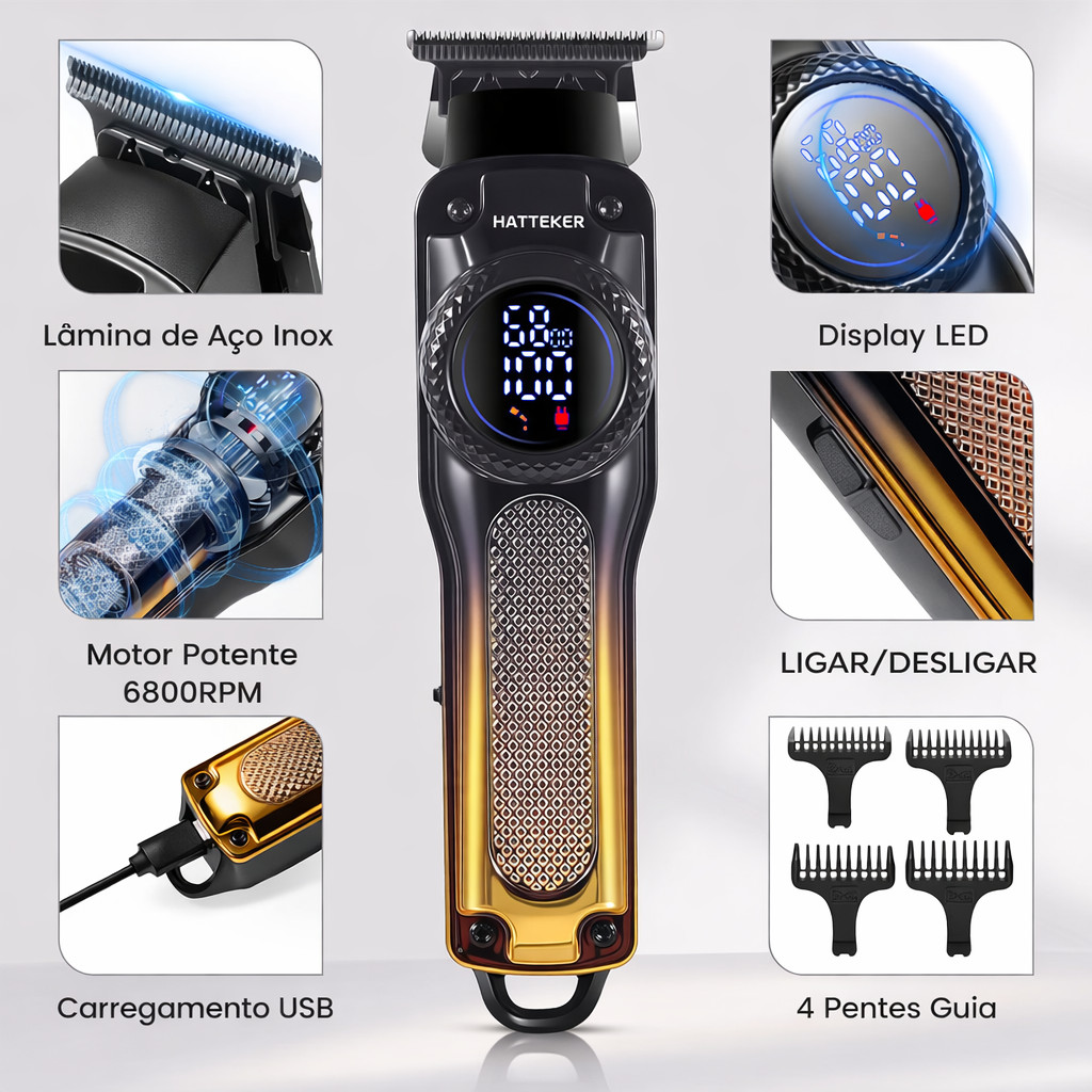 Aparador Profissional de Cabelo e Barba com Lâmina em T O aparador profissional com lâmina em T foi desenvolvido para quem busca precisão, desempenho e acabamento impecável. Ideal para uso profissional ou doméstico, ele permite criar degradês, contornos, desenhos, acabamento de barba e costeletas com máxima eficiência. Equipado com lâmina em T de aço inoxidável, oferece cortes mais próximos da pele, suaves e seguros, sem puxar ou machucar. Seu motor potente garante desempenho constante, mesmo em cabelos mais grossos, enquanto o display LED facilita o controle da bateria durante o uso. O design ergonômico proporciona firmeza e conforto, permitindo longos períodos de uso sem fadiga. O carregamento via USB traz praticidade total, podendo ser conectado a carregadores, notebooks, power banks ou carro. Disponível exclusivamente nas cores dourado e azul , combinando elegância com visual profissional. Principais benefícios: Lâmina em T de aço inoxidável de alta precisão Ideal para cabelo, barba, contornos e desenhos Display LED com indicador de bateria Motor potente e silencioso Carregamento USB prático e versátil Design ergonômico e acabamento premium Cuidados com o Produto Para garantir maior durabilidade e desempenho: Limpe a lâmina após cada uso com a escova inclusa Evite contato direto com água, salvo indicação específica do modelo Lubrifique a lâmina periodicamente com óleo próprio para máquinas Não utilize o aparelho conectado ao carregador Armazene em local seco e protegido Utilize apenas os pentes compatíveis para evitar danos à lâmina