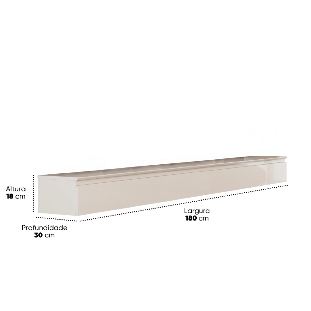 Transforme seu espaço com o Aparador Suspenso Aspen 1,80m, perfeito para hall de entrada, sala de estar ou corredor. Com um design moderno e minimalista, ele traz elegância e praticidade, combinando com diversos estilos de decoração. Equipado com três gavetas espaçosas e corrediças telescópicas, proporciona um deslizamento suave e silencioso, ideal para organizar chaves, correspondências e itens decorativos. Sua fixação suspensa deixa o ambiente mais leve e facilita a limpeza, garantindo um toque sofisticado ao espaço!. MEDIDAS: [ A ] = 18 cm [ L ] = 1,80 cm [ P ] = 30 cm PESO: 23,3 kg GAVETAS SUPORTAM ATÉ: 5 kg NICHO SUPORTA ATÉ: 5 kg MODELO: Aparador Suspenso para Hall de Entrada 3 Gavetas 1,80m Aspen MARCA: EDN COR: Off White MATERIAL: MDP e MDF ESPESSURA DO MATERIAL DA ESTRUTURA: 12, 15 e 18mm TIPODE PINTURA: UV GAVETAS: 3 CORREDIÇAS: Telescópicas ACABAMENTO: Bordas Laqueadas TAMPO: MDF PUXADOR: Em cava GARANTIA: 3 Meses DIFERENCIAL: Design Clean com bordas laqueadas e corrediças telescópicas RECOMENDAÇÃO DE LIMPEZA: Para maior durabilidade, recomendável que a limpeza dos móveis seja feita com pano limpo e levemente umedecido em água e sabão neutro. Em seguida, deverá ser passado um pano limpo e seco. SISTEMA DE MONTAGEM: Parafusos e Minifix ITENS INCLUSO: 1 Nicho, 1 Kit Parafusos, 1 Manual de montagem A Esplanada Móveis se responsabiliza pela entrega dos produtos adquiridos até a porta de entrada ou portaria do endereço indicado, se a portaria do condomínio permitir, as entregas são efetuadas no piso térreo e é de responsabilidade do cliente a locomoção da mercadoria até seu apartamento ou casa. Confira as dimensões do produto e certifique-se de que estão adequadas aos elevadores, portas e corredores do local da entrega. Não fazemos a montagem, desmontagem do produto e/ou portas e janelas, transporte pela escada ou içamento pelo lado de fora do prédio. Não está incluso no serviço de entrega o deslocamento até o interior do apartamento, com ou sem elevador, ou deslocamento em locais de difícil acesso como escadarias. Caso o cliente necessite de entrega dentro das dificuldades mencionadas, deverá entrar em contato para análise e cotação do valor do serviço. Certifique-se de tudo antes de finalizar a compra, evitando assim futuros desagrados ou imprevistos com a entrega.