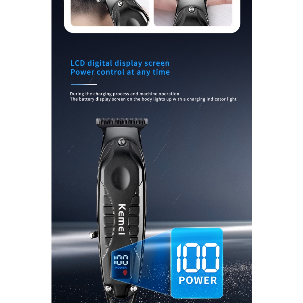 Aparadores De Cabelo Profissionais Sem Fio Kemei Recarregáveis Elétricos Homens Acabamento Máquina De Corte Display LCD Barbeador