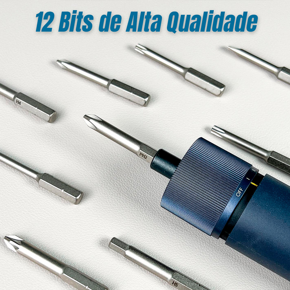 Aparafusadora Elétrica Hoto Lite 3.6V, 12 Bits de Aço S2, Torque Ajustável, LED, USB-C, Até 1000 Parafusos, 4N·m de Torque 1. Potente e Eficiente: A Aparafusadora Elétrica Hoto Lite 3.6V oferece até 4 N·m de torque e 220 rpm de velocidade, permitindo apertar até 1000 parafusos com uma única carga. Ideal para reparos em eletrônicos, móveis e projetos de bricolagem. 2. 12 Bits de Alta Qualidade: O conjunto inclui 12 bits de alta qualidade feitos de aço S2, com dureza de até 60 HRC. Eles são resistentes à ferrugem e duram muito tempo, além de serem armazenados de maneira prática na base do dispositivo para fácil acesso. 3. Ajuste de Torque Inteligente: Com um chip inteligente e um botão rotativo de três estágios, você pode ajustar o torque de acordo com a tarefa. O modo Safety Lock impede o acionamento acidental, proporcionando mais segurança durante o uso. 4. Luz LED Integrada e Parada Instantânea: A aparafusadora possui retroiluminação LED que facilita o uso em áreas com pouca luz. Além disso, o recurso Smart Instant Stop para imediatamente quando o botão é liberado, evitando danos aos parafusos e ao usuário. 5. Design Compacto e Confortável: Com um peso de apenas 250g e um design ergonômico, a chave de fenda Hoto é confortável de usar por longos períodos. A porta USB-C permite carregamento rápido, e a bateria de 1500 mAh garante uma longa autonomia para seus projetos. Garantia 90 dias