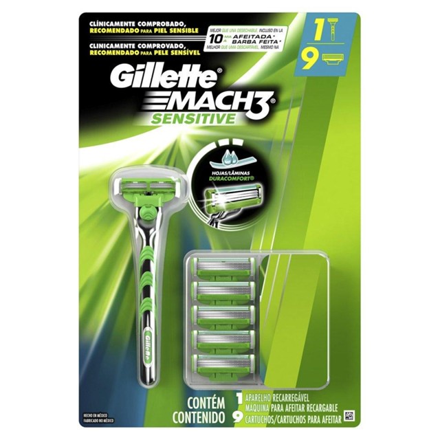 | Aparelho de Barbear Gillette Mach3 Sensitive + 9 Cargas Sensitive este produto | R$ 151,02 | 1% | 5.0/5 | — |