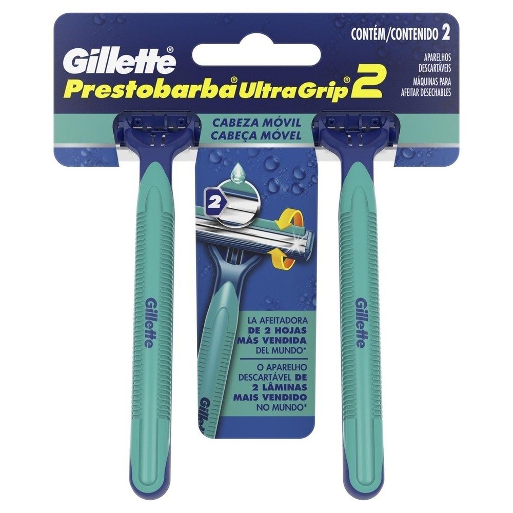 O Aparelho de Barbear Prestobarba Ultragrip com cabeça móvel, proporciona um barbear mais suave com suas fitas lubrificação. Suas lâminas foram desenvolvidas para um barbear com muito mais rente e com menos cortes. Obtenha um barbear mais suave com o Aparelho de Barbear Gillette Prestobarba Ultragrip. Com fita lubrificante que contém ingredientes que cuidam da sua pele.