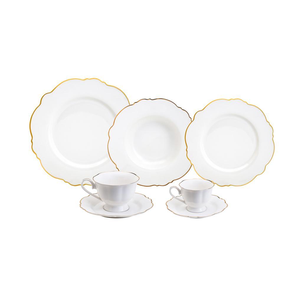 Aparelho de Jantar 42 Peças Wolff Maldivas Fio de Ouro