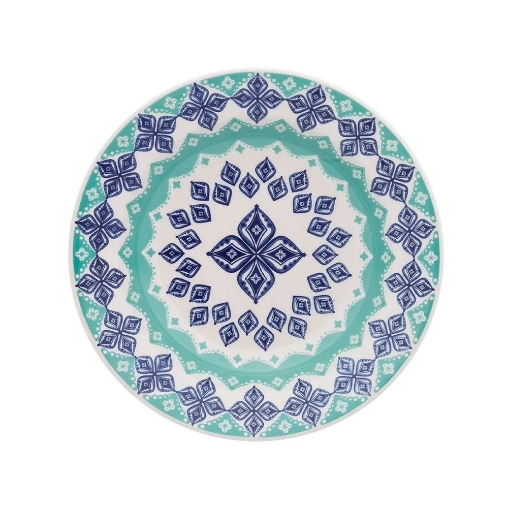 Contéudo da Embalagem: 4 Pratos Rasos - 24cm 4 Pratos Fundos - 21,5cm 4 Xicaras de Chá - 200ml 4 Pires de Chá - 14cm Características do Produto: Marca: Biona Material: Cerâmica Para: Jantar/Chá Linha do Produto: Lola Características Adicionais: Uso indicado: Pode ir ao micro ondas e na lava louças. Não permitido usar em fornos. Essa decoração faz referência ao Nhanduti, um tipo de renda bordada típica do Paraguai. Decoração: Estampado. Fornecedor: Oxford Porcelanas S/A