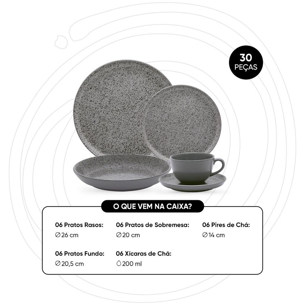Aparelho de Jantar e Chá 30 Peças Oxford Flat Gray