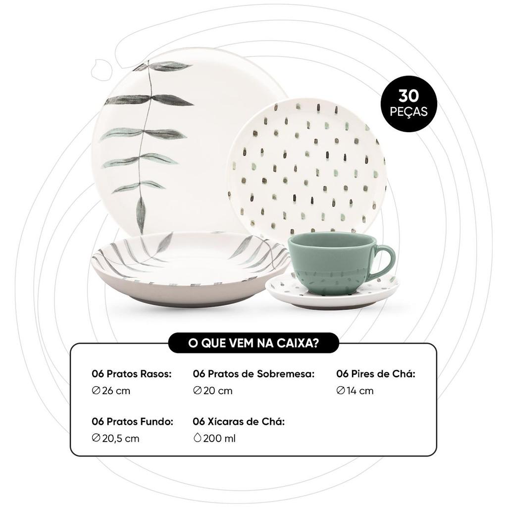 Aparelho de Jantar e Chá 30 Peças Oxford Flat Samambaia