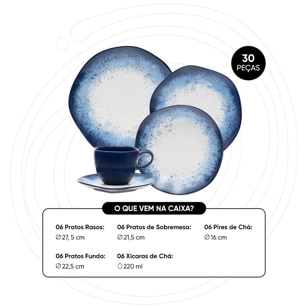 Aparelho de Jantar e Chá 30 Peças Oxford Ryo Galápagos