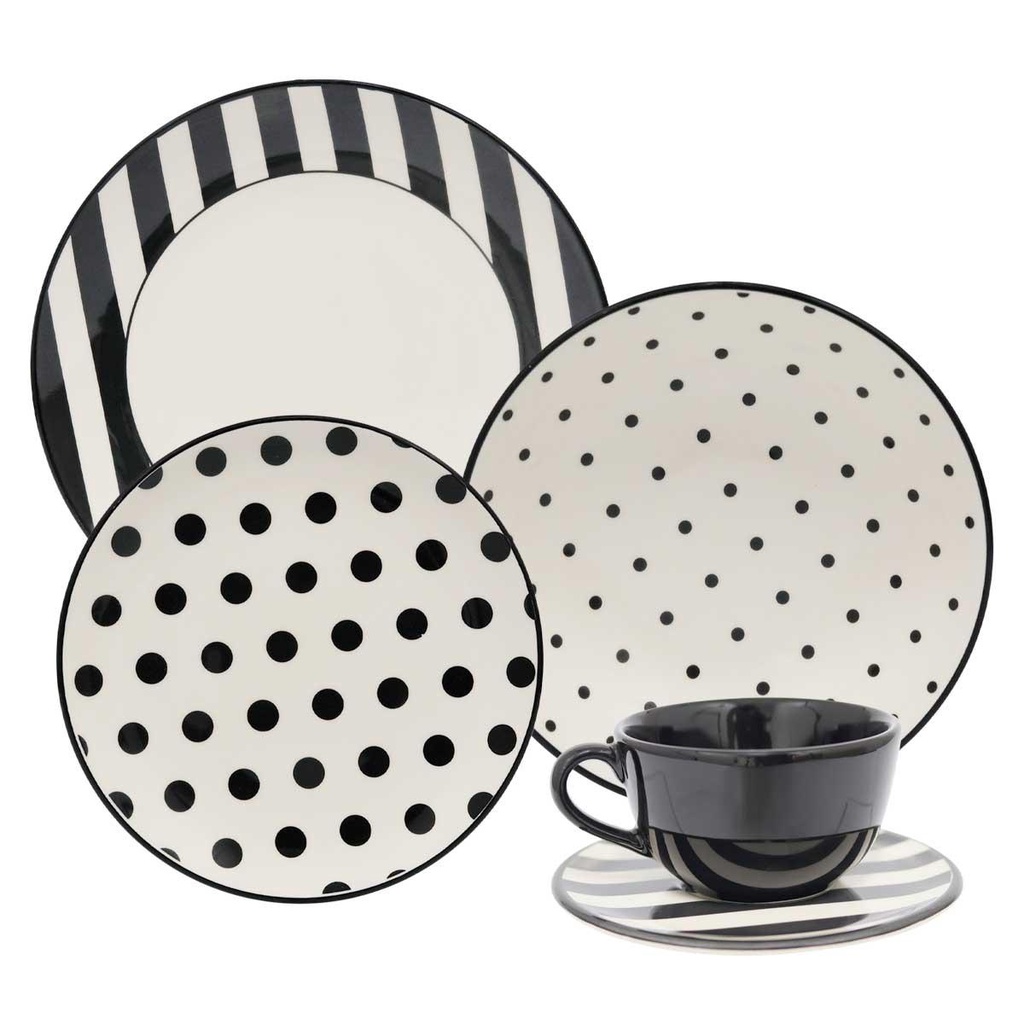 Aparelho de Jantar e Chá 30 Peças Oxford Unni Stripes And Dots