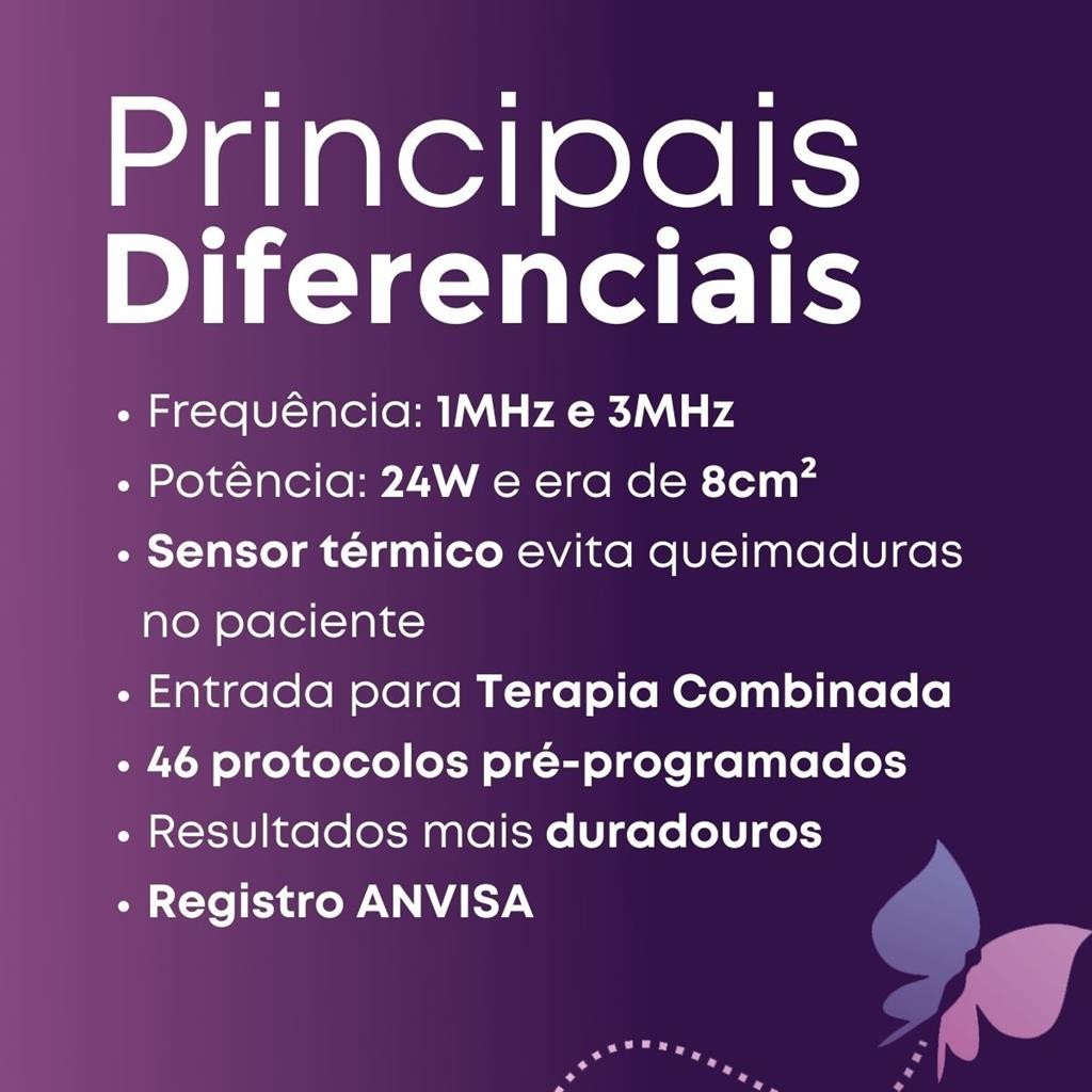 O Sonopulse III foi desenvolvido pela Ibramed com a função de gerar ondas sonoras, que nada mais são do que vibrações mecânicas a serem transformadas em energia atuante no tecido de forma contínua ou pulsada. Quando utilizado em seu modo contínuo a energia produzida pelo transdutor pode gerar um leve calor, o que em casos de patologias agudas, pode ser desconfortável, mesmo este tipo de tratamento sendo muito eficaz nestes casos. Na terapia por ultrassom pulsado são gerados pulsos de onda com intervalos rápidos que são suficientes para o resfriamento da circulação sanguínea da área tratada, onde os resultados são obtidos pelos efeitos não térmicos do equipamento. Apresenta design com display gráfico e moderno que facilita a identificação de protocolos e programações, além de uma ligeira inclinação, possibilitando que o profissional ajuste o mesmo com toda a facilidade, estando ele em pé ou sentado. Este equipamento ainda pode trabalhar com a terapia combinada, ou seja, com a aplicação simultânea de dois estímulos, que neste caso, seria a junção do ultrassom com uma estimulação elétrica de baixa ou média frequência, combinando efeitos analgésicos das corrente com os efeitos térmicos e mecânicos do ultrassom. Vale lembrar que essa terapia só pode ser feita com equipamentos da mesma marca. Dentro do transdutor de ultrassom do SONOPULSE III, existe um sensor de temperatura que estará verificando e mantendo constante a temperatura de trabalho do cristal piezo elétrico e consequentemente a da face de alumínio do transdutor, evitando ao paciente aquela sensação desagradável de calor excessivo. Este sensor está programado para que a temperatura no alumínio nunca ultrapasse a 41 graus centígrados. Durante o tratamento, principalmente quando o gel de acoplamento utilizado não é de boa qualidade, a temperatura poderá se elevar acima dos 41 graus. Quando isto acontecer, o equipamento "congela" o tempo programado no timer, desligando a emissão do ultrassom. O profissional deverá continuar "passando" o transdutor como se nada estivesse acontecido, pois decorrido alguns segundos a temperatura voltará ao normal. O equipamento automaticamente "descongela" o tempo retomando a programação original. O equipamento deve ser utilizado somente sob prescrição e supervisão de um profissional licenciado. AÇÕES E BENEFÍCIOS: Possui ERA de 7cm², abrangendo uma área maior de aplicação Conta com 21W de potência Tratamento não invasivo, sendo desnecessário tempo de recuperação para retornar as atividades normais Tecnologia de operação microcontrolada Tela em LCD Sensor térmico que aponta a temperatura do equipamento e desligamento automático Painel frontal com leve inclinação, para que o terapeuta tenha melhor visualização Possui 46 protocolos pré-programados e 20 particulares INDICAÇÕES: Tratamentos para Estética e Dermatologia (3 Mhz) Gordura Localizada Celulite Pós-Lipoaspiração Pós-Abdominoplastia Fibroses Tratamentos para Fisioterapia (1 Mhz) Tendinite Bursite Miosite Capsulite Lesão Muscular Fraturas Cirurgias Ortopédicas DADOS TÉCNICOS: Marca: Ibramed Modelo: Sonopulse III Material: Metal e Polipropileno Bivolt Automático Dimensões: 26,5x27,5x11,5cm (LxPxA) Diâmetro da ERA: 7cm Peso: 1,1 Kg Garantia: 18 meses Registro Anvisa: 10360310015 ITENS INCLUSOS: 01 Acesso ao Manual de instruções digital 01 Kit cabeçote de silicone com NTC 01 Fusível de proteção sobressalente 01 Bisnaga de gel 100g 01 Cabo de força destacável