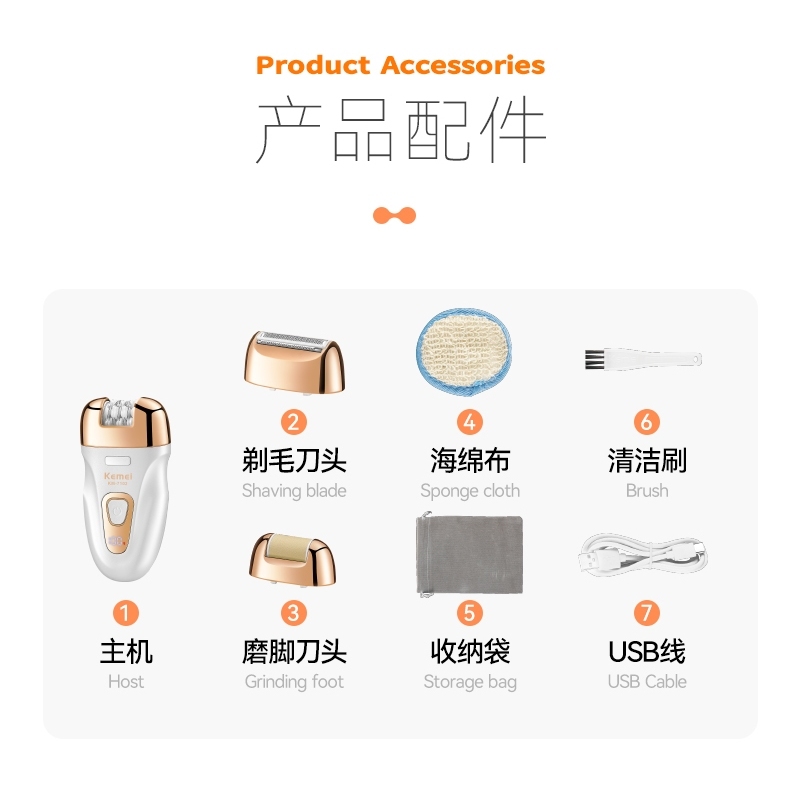 Aparelho Depilador Feminino Recarregável Aparador De Pelos Facial Corporal 3 em1 Kemei KM-7102