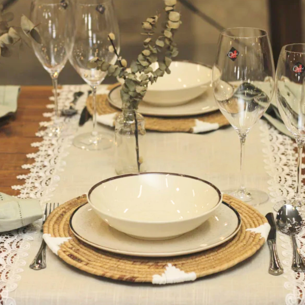 Aparelho de Jantar Oxford Unni Brisa 20 Peças Vento no rosto, o som do mar e a areia nos pés: essa é a inspiração da Coleção Unni Brisa, que traz para dentro de casa a leveza e o frescor do verão. Cada peça é marcada por pequenos detalhes em preto que remetem aos grãos de areia, enquanto as bordas recebem um delicado filete marrom, inspirado em materiais naturais como bambu e corda. O charme da coleção está no acabamento artesanal: na xícara, o filete é aplicado manualmente, tornando cada unidade única e especial. O design clean garante versatilidade, e o destaque vai para o prato fundo com capacidade de 820 ml, ideal para servir sopas e cremes de forma prática e elegante. Benefícios: Beleza natural: inspiração no mar, areia e materiais rústicos. Detalhes artesanais: cada xícara recebe filete manual, garantindo exclusividade. Praticidade no dia a dia: peças resistentes a micro-ondas e lava-louças. Versatilidade: design clean que combina com mesas modernas ou descontraídas. Conteúdo da Embalagem: 4 pratos rasos – 26 cm 4 pratos fundos – 20,5 cm (capacidade 820 ml) 4 pratos de sobremesa – 20 cm 4 xícaras de chá 200ml + 4 pires – 14 cm Especificações: Linha/Decoração: Unni Brisa Material: Cerâmica de alta qualidade Cor: Marrom e Off White Formato: Redondo Decoração: Estampado Uso: Resistente a micro-ondas e lava-louças Embalagem: Caixa litografada (ideal para presentear) Garantia: 90 dias (defeitos de fabricação)