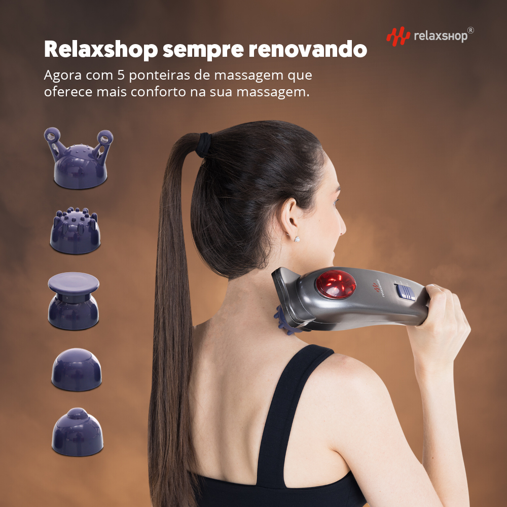 Sejam Bem-Vindos a RELAXSHOP® uma marca reconhecida pelo Instituto Nacional de Marca registrada no BRASIL. Atuamos no segmento de aparelhos portáteis de massagem, há mais de 10 anos e somos uma loja que faz parte do Programa de Vendedores Indicados da Shopee. O que significa LOJA INDICADA? *** Compra 100% segura pela Shopee e Relaxshop®; *** Produto 100% Original; *** Suporte ao Cliente Online exclusivo. Trabalhamos somente com produtos: *** A PRONTA ENTREGA; *** COM NOTA FISCAL; *** PRODUTOS ORIGINAIS. Como saber se o produto é ORIGINAL? É bem simples, precisa acompanhar 5 PONTEIRAS DE MASSAGEM e ter a logo marca da RELAXSHOP. NOSSOS DIFERENCIAIS: *** Pedidos separados e embalados no máximo em 24h úteis; *** Suporte Online exclusivo; *** Produtos de Alta Qualidade; *** Assistência Técnica Própria. Descrição do Produto: Nada como dar aquela relaxada e recuperar a energia depois de um dia corrido! Alivia as tensões com massagem localizada e relaxante, onde você estiver! Nada como dar aquela relaxada e recuperar a energia depois de um dia corrido! Tudo ficou ainda mais fácil com o Massageador Hammer Relax, fácil e rápido se sentir renovado com massagens localizadas que aliviam o cansaço do dia a dia, onde você estiver! Perfeito para usar no corpo todo. Com ele você consegue relaxar e aliviar as tensões dos músculos cansados, garantindo uma sensação agradável por todo seu corpo. Graças ao seu design inteligente, o Massageador Profissional Elétrico facilita o uso em diversas regiões do corpo. O Massageador Hammer Relax acompanha 5 ponteiras de massagem para obter resultados diferenciados: DIFERENCIAIS DAS PONTEIRAS: - Ponteira lisa: perfeita para áreas delicadas; - Ponteira redonda: ideal para dores nas costas, lombar, pernas, panturrilhas e planta dos pés; - Ponteira com 1 ponto: alívio concentrado em área específica do músculo; - Ponteira com 2 pontos (silicone): alívio para dores no pescoço, braços, pernas e panturrilhas; - Ponteira com multipontos: ideal para melhora da circulação. INDICAÇÕES: - Relaxamento; - Alívio da tensão; - Dores musculares; - Melhora da circulação sanguínea; - Alívio da fadiga. ITENS INCLUSOS: - Massageador; - 5 ponteiras; - Manual Online. Dados Técnicos: Peso: 900g Dimensão: 11X7,3X37cm Forma de usar: Ligado da tomada Aplicação: Todo corpo Marca: Relaxshop Garantia: 12 meses Cor: Grafite Frequência: 50-60Hz Potência: 28W Velocidade: 2 níveis Voltagem: 110V ou 220v Tamanho do cabo: 1,80M Rotação: 3.000 RPM