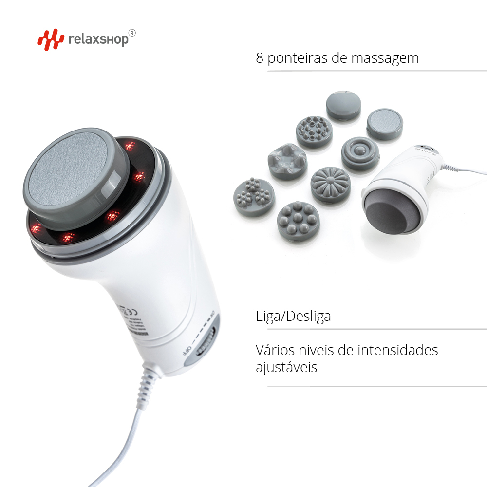 Sejam Bem-Vindos a RELAXSHOP® uma marca reconhecida pelo Instituto Nacional de Marca registrada no BRASIL. Atuamos no segmento de aparelhos portáteis de massagem, há mais de 10 anos e somos uma loja que faz parte do Programa de Vendedores Indicados da Shopee. O que significa LOJA INDICADA? *** Compra 100% segura pela Shopee e Relaxshop®; *** Produto 100% Original; *** Suporte ao Cliente Online exclusivo. Trabalhamos somente com produtos: *** A PRONTA ENTREGA; *** COM NOTA FISCAL; *** PRODUTOS ORIGINAIS. NOSSOS DIFERENCIAIS: *** Preparação do produto para postagem (no máximo 24h úteis); *** Suporte Online exclusivo; *** Produtos de Alta Qualidade; *** Assistência Técnica Própria. Descrição do Produto: Para ajudar você a cuidar do seu corpo, saúde e bem-estar, a Relaxshop lança uma massageador com tecnologia inovadora, design moderno, compacto e leve que garantem uma massagem confortável e eficaz. Massageador Corporal Orbital Power Plus que usa vibração profunda e poderosa de alta frequência e velocidade ajustável para suavizar, esculpir, massagear e tonificar seu corpo, tudo no conforto da sua casa. Ele acompanha 8 ponteiras que intensificam os resultados e uma capa protetora, além de vários níveis de intensidade reguláveis e que garantem mais conforto em uma massagem relaxante e personalizada que acalma e relaxa o pescoço, ombros, costas e pés, além de trazer firmeza e modelagem nos braços, abdômen, coxas e panturrilhas. Modelo perfeito para usar do pescoço aos pés e obter o relaxamento das tensões musculares, melhora da circulação sanguínea, auxilio no tratamento estético e da celulite. Ideal para: pescoço, braços, costas, abdômen, bumbum, coxas, panturrilhas e pés. Diferenciais das ponteiras: - Ponteira lisa: ideal para barriga com creme redutor de medidas; - Ponteira de pétala: ideal para áreas mais delicadas do corpo; - Ponteira ondulada: ideal para auxiliar firmeza da pele no bumbum, coxas e culotes; - Ponteira esférica: ideal para uma massagem mais intensa; - Ponteira com vários pontos: distribui a pressão para uma sensação revigorante; - Ponteira com 3 multiponto (dedos): ideal para usar no culote, coxa com creme redutor de medidas; - Ponteira de anel: ideal para aliviar tensões e cansaço; - Ponteira lixa: ideal para esfoliar. Dicas de uso: - Pode ser usado com creme redutor de medidas e celulite. - Utilize fazendo a massagem de forma circular. Itens inclusos: - 1 Massageador Orbital Power Plus; - 8 ponteiras; - 1 capa protetora. Dados técnicos: Peso: 700g Dimensão: 17X12X11CM Forma de usar: Ligado na tomada Aplicação: Todo o Corpo Marca: Relaxshop Garantia: 1 ano Cor: Branco Frequência: 50-60 Hz Potência: 28W Velocidade: 4 níveis Voltagem: 127V-220V
