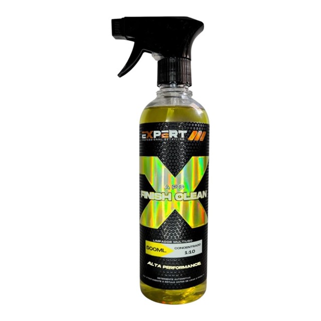 APC FINISH CLEAN LIMPADOR MULTIUSO O APC FINISH CLEAN OFERECE UMA LIMPEZA EFICAZ E COMPLETA PARA O INTERIOR DO CARRO. SUA FÓRMULA CONCENTRADA FOI DESENVOLVIDA ESPECIALMENTE PARA REMOVER SUJEIRAS DE DIVERSAS NATUREZAS, COMO GORDURAS E MANCHAS,SEM DANIFICAR A COR E NEM A TEXTURA DAS SUPERFÍCIES,DAS MAIS LEVES ATÉ AS MAIS DIFÍCEIS DE SAIR. NÃO INDICAMOS QUE SEJA USADA EM BANCO DE COURO. Características Alto Poder de Limpeza em diversas superfícies / Multiuso e PH Neutro / Aroma de Abacaxi Diluição Concentrado: Diluição 1:10 até 1:30 Como Usar Antes de iniciar a aplicação deste produto, certifique-se que a superfície não esteja quente e não aplique o produto com o veículo exposto ao sol. Aplicar sobre a superfície a ser limpa com o auxílio de um pano microfibra, espalhando o produto fazendo movimentos circulares. Utilizar outro lado do pano microfibra para fazer o acabamento. Produtos para os profissionais detail demandam características essenciais: Alta Qualidade, Desempenho Excepcional com Resultados Duradouros. Pega a dica: Apenas os EXPERTS conseguem alcançar esse nível extra de excelência. Seja um EXPERT você também! EXPERT . FINISH CLEAN 500ML O APC FINISH CLEAN oferece uma limpeza eficaz e completa para o interior do carro. Sua fórmula concentrada foi desenvolvida especialmente para remover sujeiras de diversas naturezas, como gorduras e manchas, sem danificar a cor e nem a textura das superfícies, das mais leves até as mais difíceis de sair. Não indicamos que seja usada em banco de couros. MODO DE USAR: Utilizar até 1 parte de produto para 10 partes de água. Para locais com maiores sujidades utilizar até a concentração de 1 parte de produto para 3 partes de água. Antes de iniciar a aplicação deste produto, certifique-se que a superfície não esteja quente e não aplique o produto com o veículo exposto ao sol. Aplicar sobre a superfície a ser limpa com o auxílio de uma esponja ou pano microfibra, fazendo movimentos circulares. Em seguida enxágue ou passe um pano umedecido para remoção de possíveis resíduos. Caso necessário repita a operação. COMPOSIÇÃO: Água, Solvente, Neutralizadores de pH, Tensoativos aniônicos, Conservante, Fragrância e Corante. CARACTERÍSTICAS: Concentrado: Diluição 1:10 até 1:3 Alto Poder de Limpeza em diversas superfícies Multiuso e PH Neutro Aroma de Abacaxi VALIDADE: 24 meses a partir da data de fabricação. Lote e Fabricação: vide embalagem.