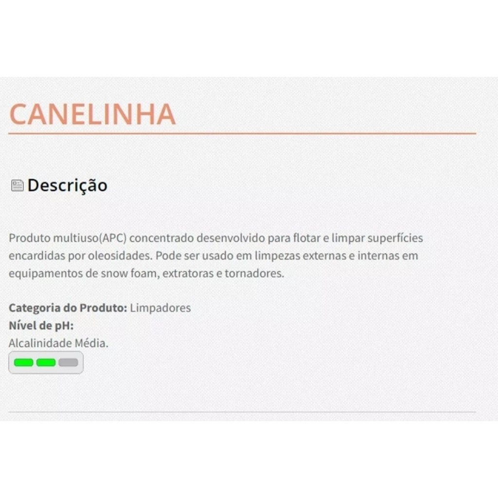 Produto multiuso (APC) concentrado desenvolvido para flotar e limpar superfícies encardidas por oleosidades. Pode ser usado em limpezas externas e internas em equipamentos de snow foam, extratoras e tornadores.Categoria do Produto: LimpadoresInstruções de UsoDiluição: De acordo com a sua necessidade dilua uma parte de produto em até cinquenta partes de água.Pulverize o produto sobre a superfície a ser limpa, durante a limpeza esfregue com uma escova de cerdas e por fim remova os resíduos enxaguando com água(no exterior do veículo) ou uma flanela limpa e úmida(no interior do veículo).Dicas:Rendimento Médio por Galão de 5 Litros: 100 Carros.Disponível:1 - Multiuso Alcalino Canelinha Finisher 2lCaracterísticas:- Produto Novo de Excelente QualidadeServe para os Modelos e Anos:UniversalEspecificação Técnica:- Marca Finisher- Modelo 919