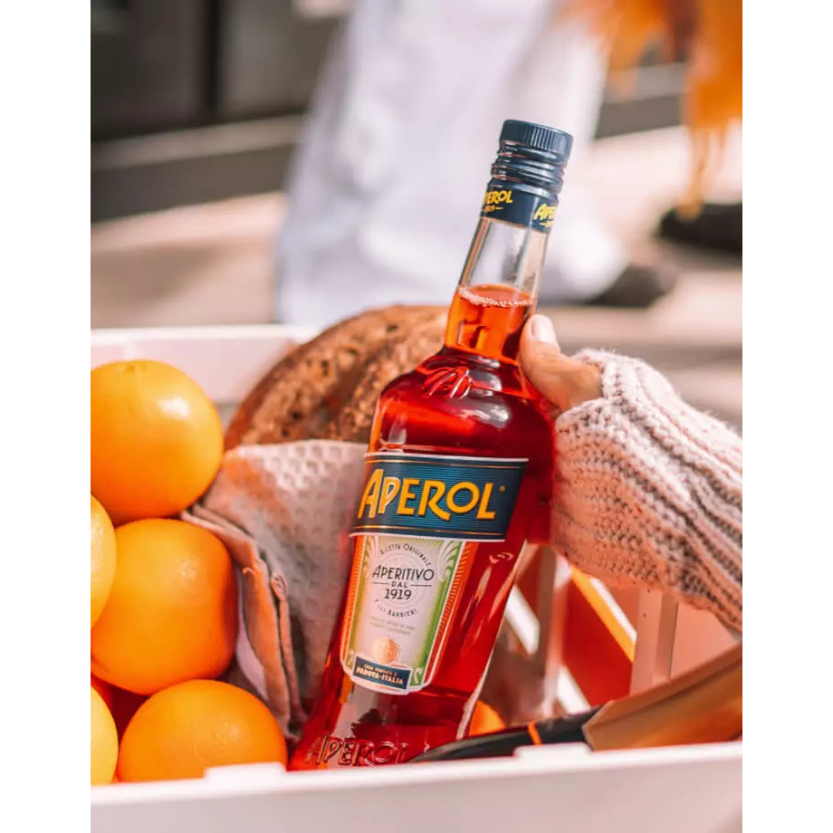 Aperitivo italiano. Como diz o nome, Aperol é um aperitivo perfeito. Possui cor laranja, vívida e sabor inconfundível, graças a sua receita secreta, a base de laranjas de diversos tipos: amarga, doce, china, genziana, rhubarb e muitos outros ingredientes, como ervas aromáticas numa dose perfeita. Hoje, já é o queridinho dos apreciadores mais modernos (quase um estilo de vida!), e você já deve ter visto por aí uma bebida laranja em uma grande taça redonda que, no mínimo, chama a atenção dos olhos. Levemente doce, com teor alcoólico baixo, é fácil de agradar, e faz sucesso principalmente no famoso drink Aperol Spritz (com espumante). CARACTERÍSTICAS: Categoria: Aperitivo / Licor. Graduação: 11% vol. Volume: 750 litro.