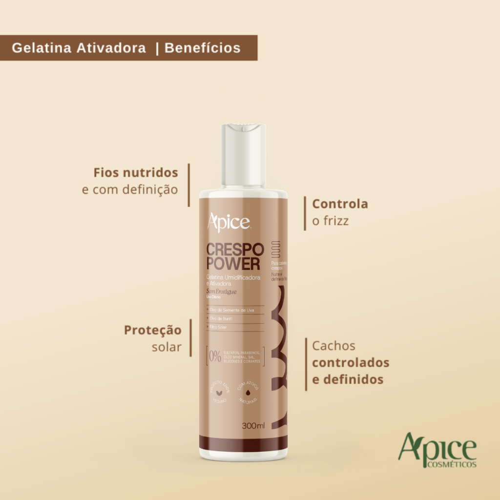 Apice Apse Gelatina Umidificadora Ativadora Crespo Power Nutrição Hidratação Filtro Solar 500ml