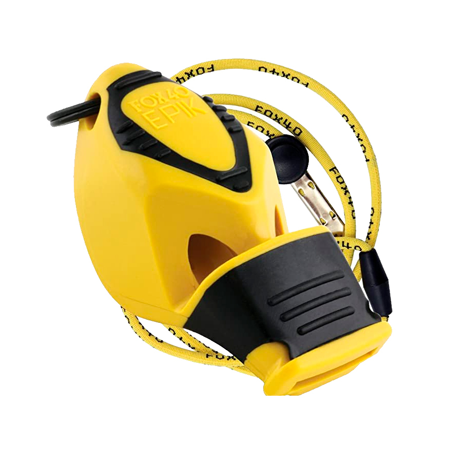 APITO FOX EPIK CMG COM CORDÃO Os Apitos Fox 40 podem ser usados em qualquer atividade e são indicados para Árbitros, Treinadores, Professores e outros profissionais. Possuem um som penetrante e consistente; A linha de apitos FOX 40 é primeira escolha de organizações desportivas em todo continente. CARACTERÍSTICA: - Sem Interrupções do som por não ter esfera, o Fox 40 Epik CMG possui um desempenho consistente; - É um ótimo apito, seguro e confiável para Buscas, Salvamentos, Resgastes e para ser usado ao Ar Livre; - Especificamente concebido para operar em condições meteorológicas adversas; - Fabricado em Policarbonato e moldado em elastômero para o maior conforto e resistência; - Emite um som agudo de 115 dB, ouvidos há quilômetros de distância; - Design: 2 Câmaras / 4 Ressonadores; - Anel de Aço inoxidável a prova de ferrugem; - Potência Sonora: 115 dB; - Marca: Fox 40 - Origem: Importado - Contém: 1 Unidade - Produto Novo; - Original; - Estoque imediato