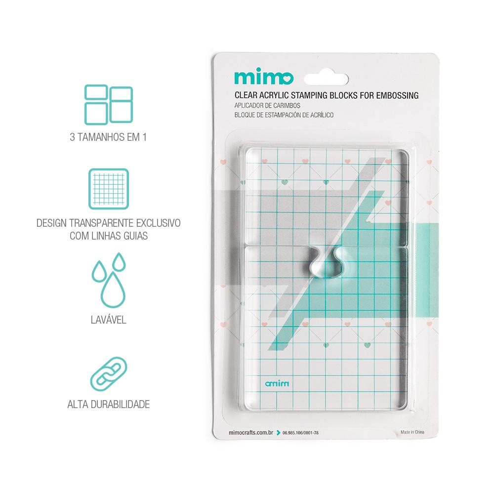 O Bloco Acrílico para Carimbos Mimo é ideal para usar com 3 tamanhos diferentes de Carimbos de Silicone Mimo. O design transparente com linhas guias garante uso mais preciso na hora de fazer emboss. Como Usar Bloco Acrílico para Carimbos Mimo Use o Bloco Acrílico para Carimbos com os Carimbos de Silicone Mimo, a Carimbeira para Emboss Mimo, a Tinta para Embossing Mimo e o Soprador de Ar Quente Mimo. Caso não tenha esses itens, você pode comprá-los separadamente na nossa loja online; Primeiramente, você vai escolher o carimbo de silicone que deseja usar. Ele possui superfície traseira aderente, sendo assim, prenda-a no Base de Acrílico da Mimo Crafts; Em seguida, você vai usar a Carimbeira da Mimo, já com a Tinta para Embossing. Então, é só pressionar o carimbo de silicone com a ajuda do bloco acrílico sobre a carimbeira; Quando o carimbo de silicone já estiver umedecido com a tinta para embossing, aplique-o na superfície desejada; Em seguida, polvilhe o Pó de Embossing da cor desejada sobre o desenho e retire o excesso de pó. Depois, aqueça a área polvilhada com o Soprador de Ar Quente Mimo até que o pó derreta. O pó derrete a uma temperatura aproximada de 120 ° C. Feito isso, está pronto o seu relevo personalizado. O resultado vai te surpreender! Informações Técnicas Produto: Bloco Acrílico para Carimbos Mimo Quantidade: 1 uni Tamanho: 12 cm x 8 cm Cor: Transparente Composição: Acrílico Carimbos Compatíveis: 4,5 cm x 7,5 cm; 7,5 cm x 7,5 cm; e 12 cm x 7,5 cm. Recomendação de Aplicação: Refil de Tinta para Embossing Mimo, Carimbos de Silicone Mimo e Carimbeira para Emboss Mimo Materiais Compatíveis: Papéis variados, cartolinas, papelão cinza, chipboards e similares Marca: Mimo Crafts Código de Fábrica (SKU): 06628