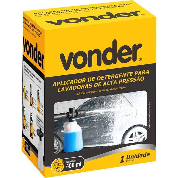 Aplicações e dicas de uso Possui regulador de volume de espuma. Conhecido como canhão de espuma Indicado para prensar o prensa cabos de 1/16", 3/32", 1/8" e 3/16" Indicado para limpeza automotiva, pois proporciona espuma intensa (Floculação). Utilizado nas lavadoras de alta pressão elétricas VONDER, modelos: LAV 1200, LAV 1400, LAV 1800, LAV 1800I e LAV 2000I Características Técnicas Material: Caneca e adaptador em plástico Capacidade: 400 ml