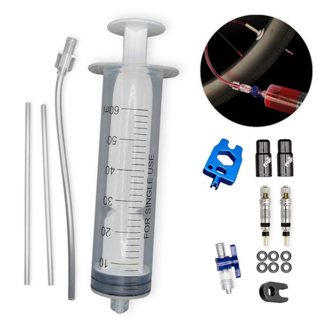 Aplicador de Selante para Pneu Tubeless Bike Bicicleta c/ Seringa, Núcleo da Válvula e Ferramentas