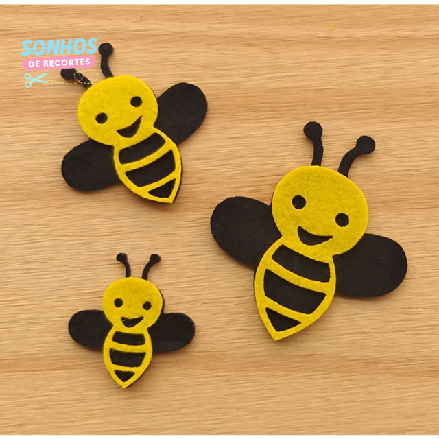 Aplique abelha em feltro 20 unidades. Tamanhos: 3cm , 4cm e 5cm. Cada abelha vão com duas partes. PRODUTO ENVIADO COM SUAS PARTES COLADAS PRODUTO NÃO ACOMPANHA FITA/COLA PARA FIXAÇÃO Usamos os feltros das Santa Fé, considerado o melhor. Qualquer duvida ficaremos muito felizes em responder. * ANTES DE COMPRAR VERIFIQUE O TAMANHO DA PEÇA PARA VER SE É A MEDIDA DESEJADA.