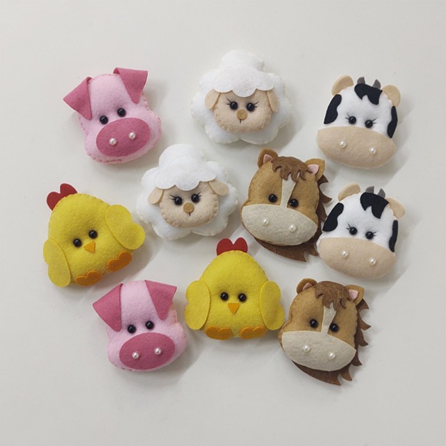 Apliques feitos em feltro com tema fazenda. Bichinhos com média de 6cm de altura. Opções disponíveis para escolha: Kit com 2 bonecos: 1 Vaca e 1 Pintinho Kit com 3 bonecos: 1 Vaca, 1 Pintinho e 1 Porco Kit com 4 bonecos: 1 Vaca, 1 Porco, 1 Pintinho e 1 Ovelha Kit com 5 bonecos: 1 Vaca, 1 Porco, 1 Pintinho, 1 Ovelha e 1 Cavalinho Você pode usa-los como apliques de vestidos de aniversário, aplique de roupa para festa junina. Pode usar para personalizados de festa e também como Lembrancinha de maternidade ou aniversário! Você pode colar eles ou costurar, conforme for a idéia de uso. As cores são como estão na foto, sem opção de personalização.