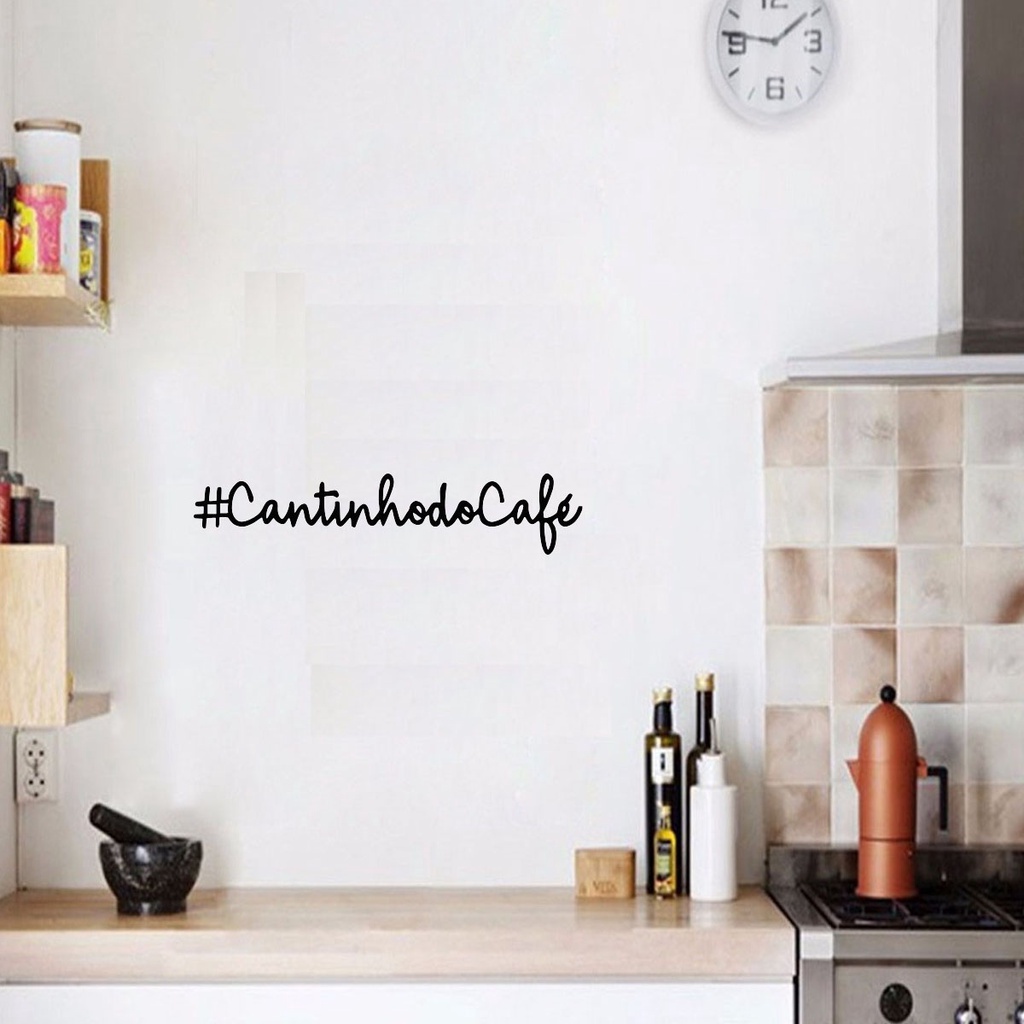 Aplique de Parede #Cantinho do Café Minimalista Lettering MDF Preto Decorativo Escultura Cozinha