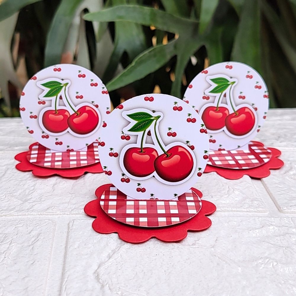 Aplique Em Pé Lembrancinha Aniversário Festa Infantil para Caixa Acrílica, Latinha Cereja Cerejinha