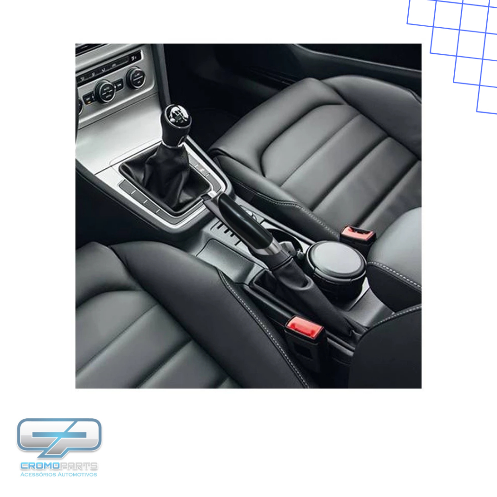 Aplique Esportivo Modelo Universal Sobre Capa Freio de Mão para Carro Caminhonete Manopla Cor Preto com Cromado