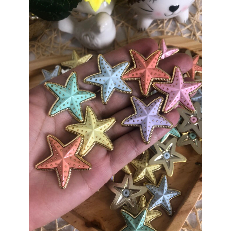 lindo aplique em acrílico modelo estrela do mar tamanho 34x33mm pacote com 5 unidades sortidos sem opção de escolha