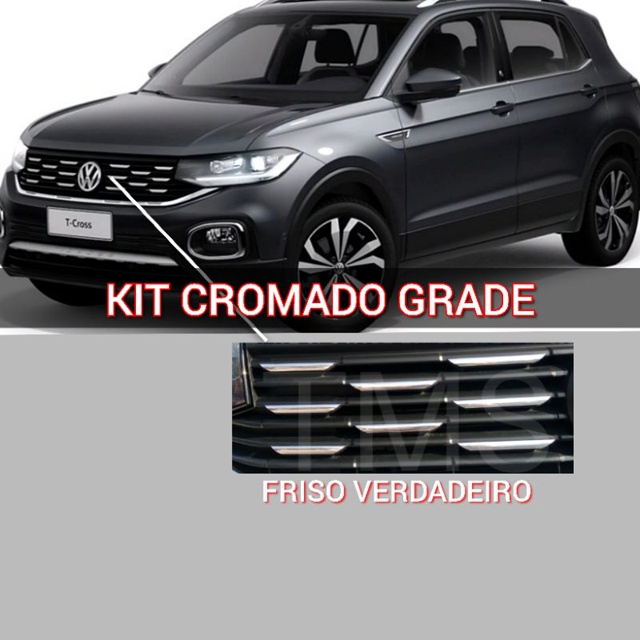 PRODUTOS TMS KIT FRISOS GRADE 16 UNIDADES T-CROSS PRODUTO SOB MEDIDA DE FACIL APLICAÇÃO AUTOCOLANTE. ATENÇÃO FRISO E NÃO ADESIVOS METÁLICOS RESISTENTE A CONDIÇÕES CLIMÁTICAS DIVERSAS LAVAGENS E POLIMENTOS CONTÉM 16 UNIDADES DE FRISO GRADE CROMADO. OBS: NÃO ACOMPANHA FRISO INFERIOR DA GRADE