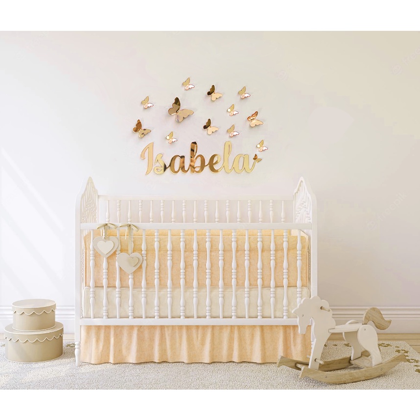 Aplique Letreiro reforçado nome para parede acrílico com borboletas 3D em acrílico