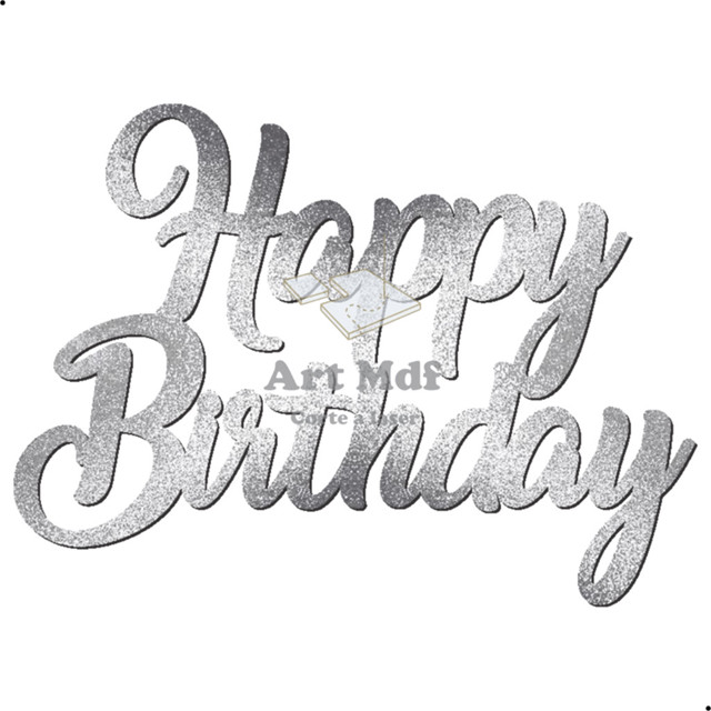 Aplique Mdf Happy Birthday 30cm Cor Prata Letreiro Mini Painel Frase Painel Decorativo Festa Aniversario Decoração