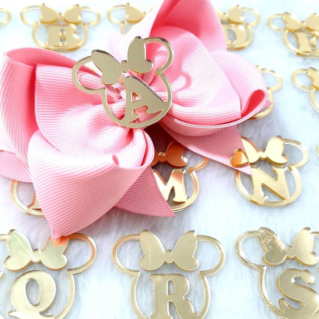 Aplique Minnie Mouse com letra Acrílico Espelhado Dourado 20 Peças