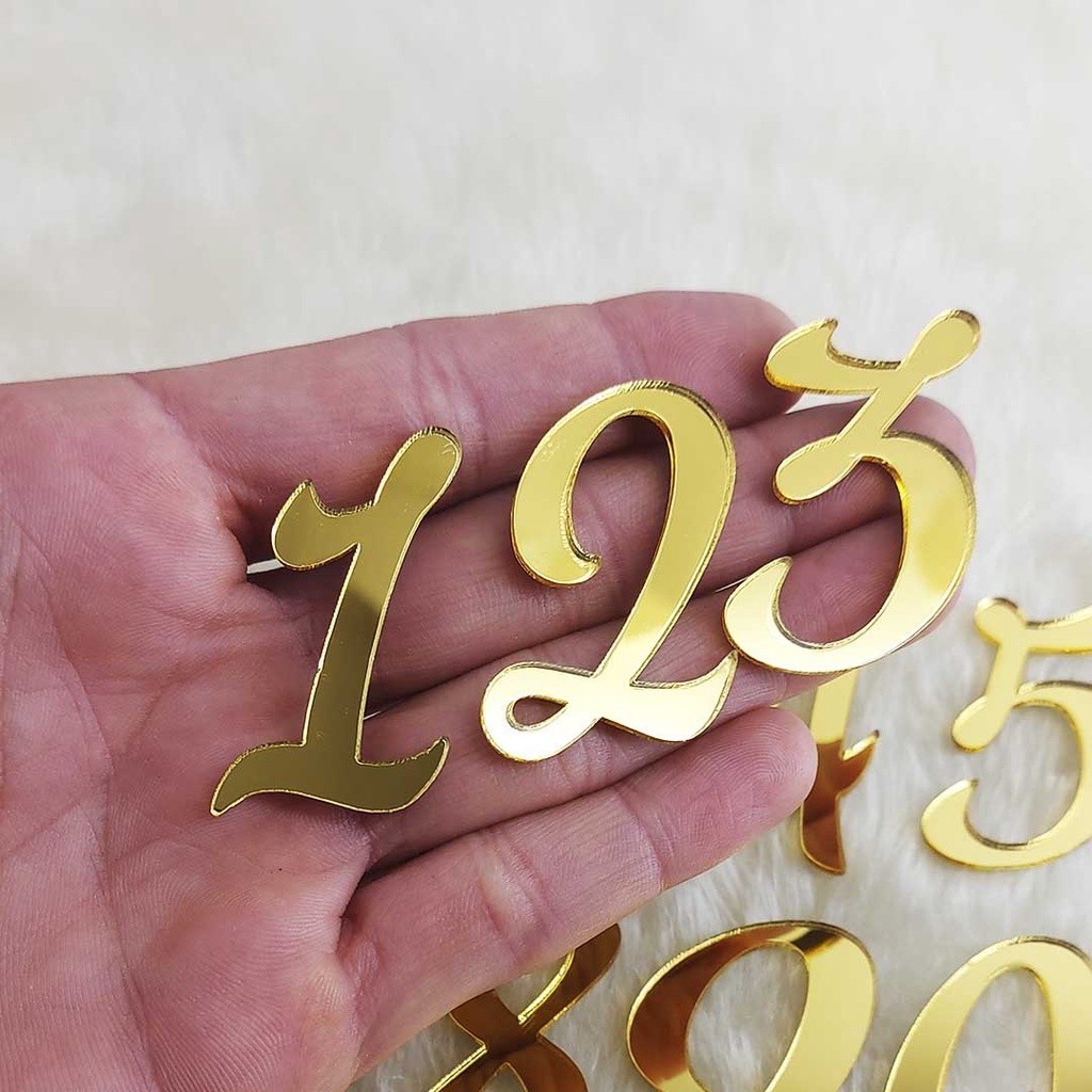 Aplique numeral numero acrílico espelhado dourado kit com 10 unidades do mesmo numeral. ATENÇÃO! O anúncio refere-se ao MAIOR LADO, para outros tamanhos consulte o vendedor e informe o tamanho desejado para que seja calculado Informações sobre o produto: - Feito em acrílico 2mm espelhado dourada; - Recorte a laser, alta qualidade e precisão; - Dimensões: A ESCOLHA IMPORTANTE: -VERIFIQUE DISPONIBILIDADE DE OUTROS TAMANHOS, MODELOS E OU CORES - Produto espelhado na frente/verso cinza ; - Produto não acompanha fixação em sua parte traseira . Informações gerais: - Antes de realizar a compra, tire suas dúvidas; - Todos os produtos são personalizáveis. Avise antes de realizar o pagamento todos os detalhes para a confecção da arte bem como custos para personalização exclusiva
