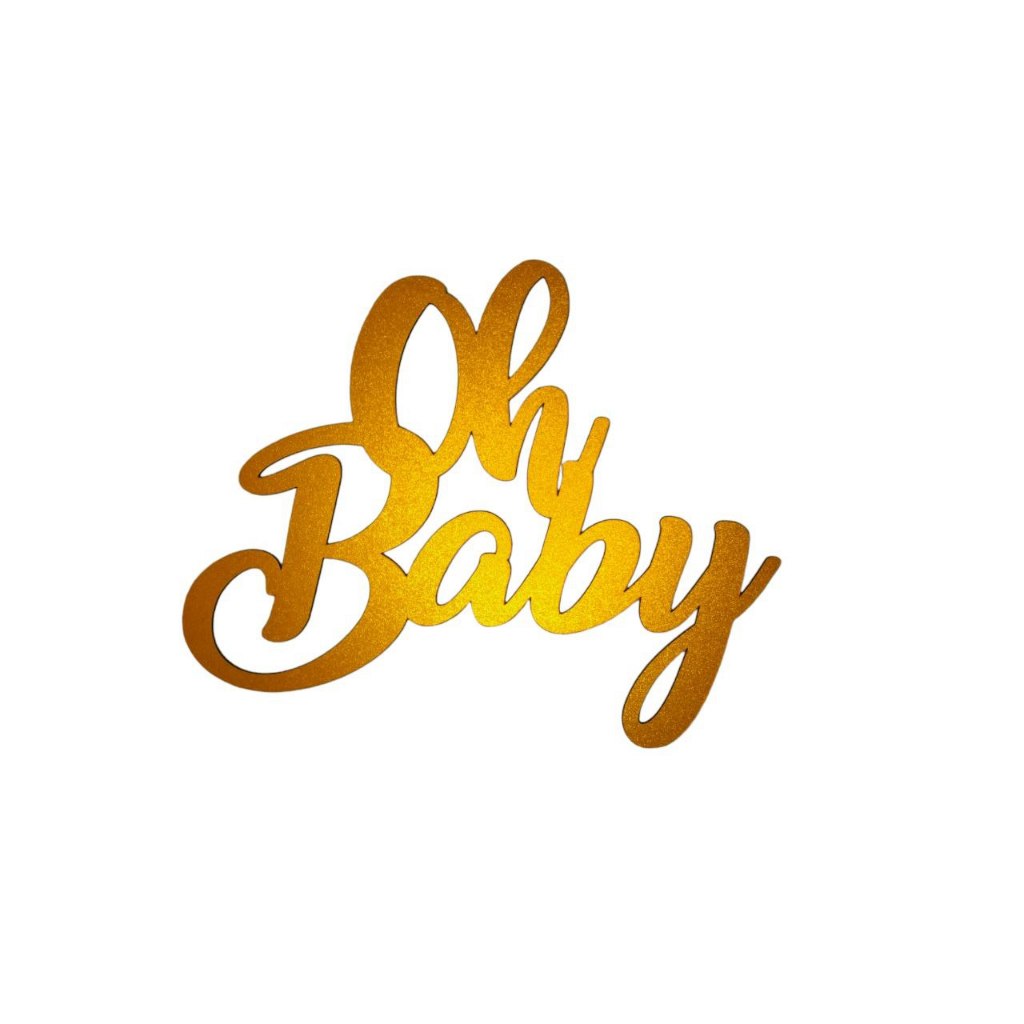 Aplique Palavra Mdf Oh Baby 40x32cm Cor Dourado Mdf Letreiro Frase Painel Decorativo Festa Aniversario Decoração Happy Birthday