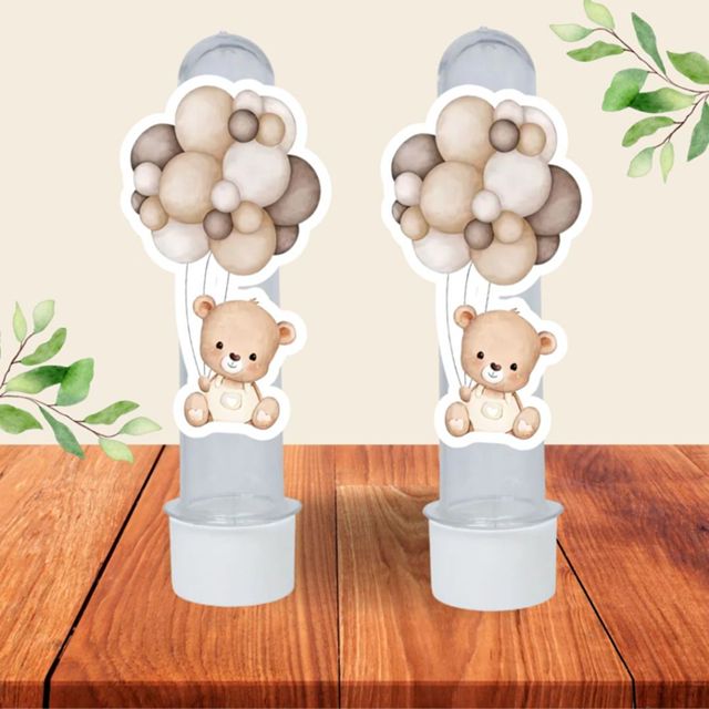 Aplique para Tubete Ursinho Neutro Chá de Bebê Marrom e bege neutro