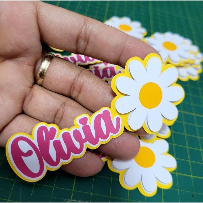 Aplique Personalizado Margarida para Tubete 13cm – Jardim das Margaridas – Festa Infantil / Lembrancinha com Nome
