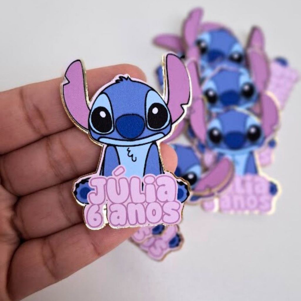 ✨ Aplique 3D do Stitch com detalhe dourado! Personalize com nome e idade e deixe sua festa ainda mais encantadora! 💙🌟 ➡️ Após a compra, informar NOME, IDADE e o TAMANHO desejado. Material: Papel Fotográfico 230g fosco com qualidade de impressão alta. ❓ Qualquer dúvida, só chamar no chat! 📩 Personalizo do jeitinho que você quiser!
