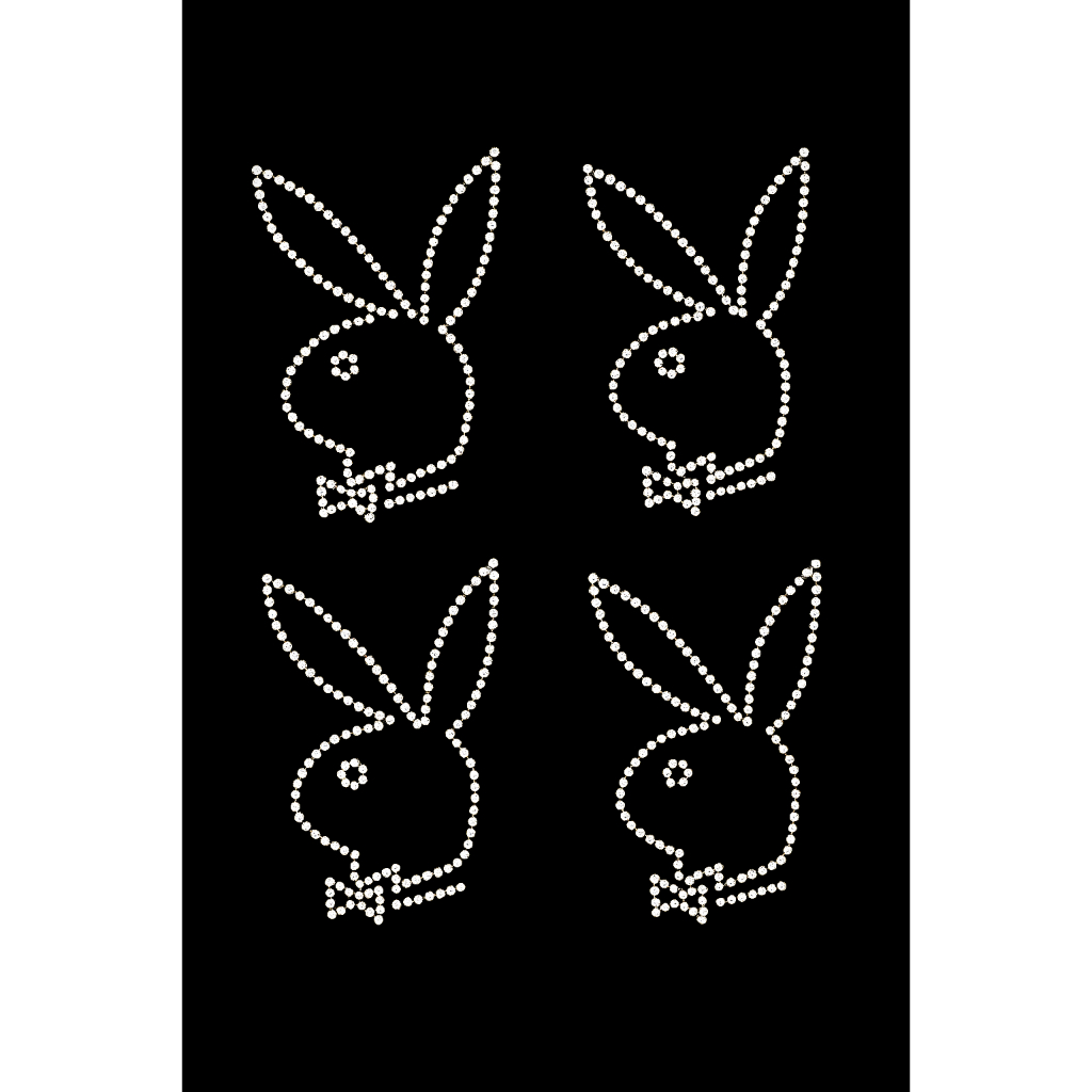 Aplique Strass Hotfix Playboy Coelho – Contorno 8cm – Ideal para Bolso de Calça Jeans