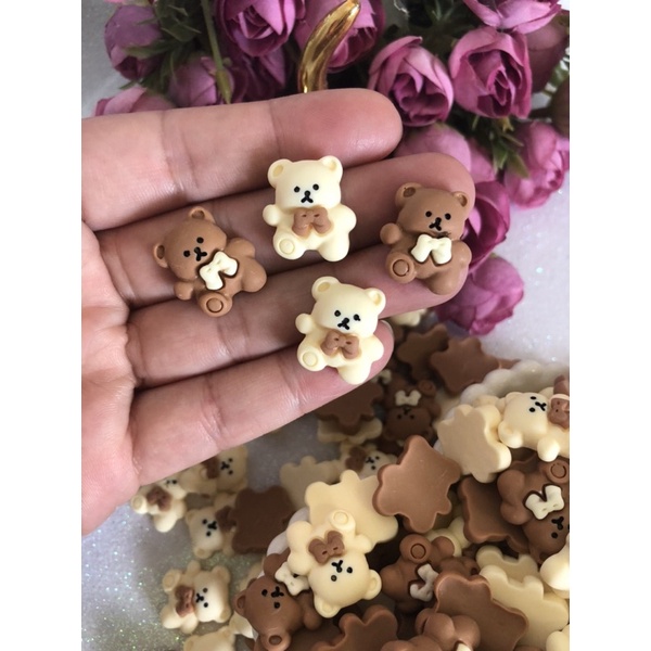 lindo aplique modelo ursinho com laço material resina pacotes com 10 unidades sortidos(marrom e bege) sem opção de escolha escolher no campo variação