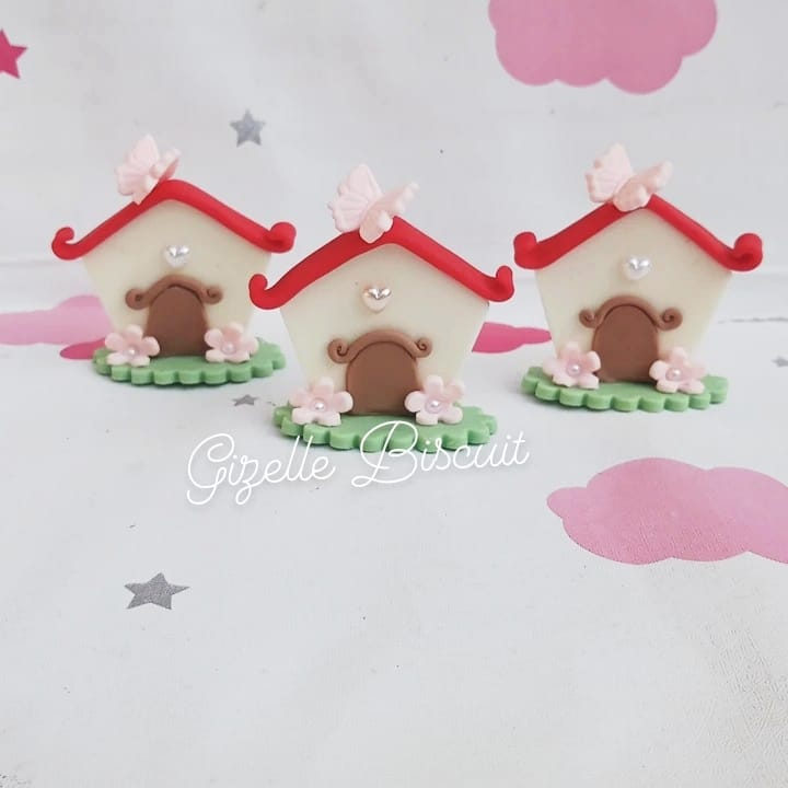 Apliques 5 casinhas jardim encantado em biscuit